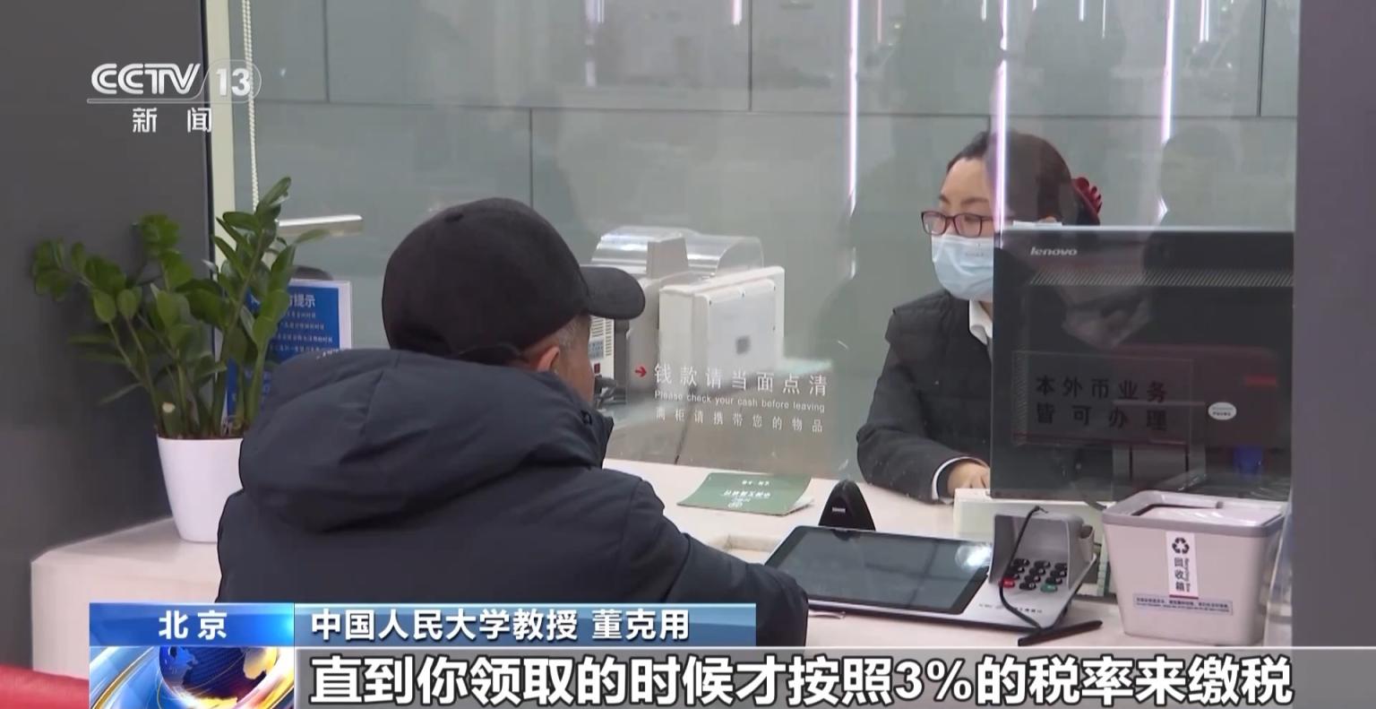中国人民大学教授 董克用:缴纳个人养老金,通过人社部的信息账户,确认你参加了基本养老保险,无论是城镇职工还是城乡居民都可以,然后你就可以开设资金账户,开设资金账户一年最高12000,你多缴也缴不进去,这是免税的。如果说你离退休还有20年,中间你这些钱去投资也是不缴税的,直到你领取的时候,才按照3%的税率来缴税。